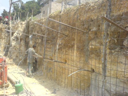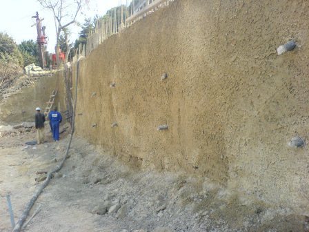 The architect at this villa residence situated on a very steep slope , was seeking a better entrance. That new entrance requires an excavation adjacent to the existing main road , jeopardizing its safety. IGM opted to installing a permanent shotcrete / nailed shoring wall thus saving the construction of a reinforced concrete retaining wall!